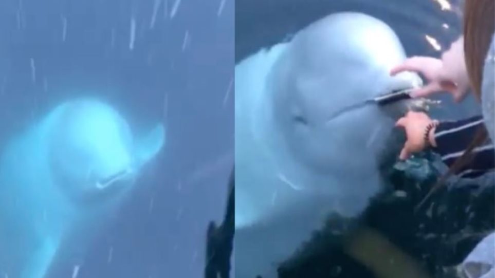 Την απίστευτη στιγμή που μία φάλαινα μπελούγκα επιστρέφει ένα κινητό που έπεσε στη θάλασσα στην ιδιοκτήτριά του καταγράφει viral βίντεο, το οποίο κάνει τον γύρο του διαδικτύου τα τελευταία 24ωρα.