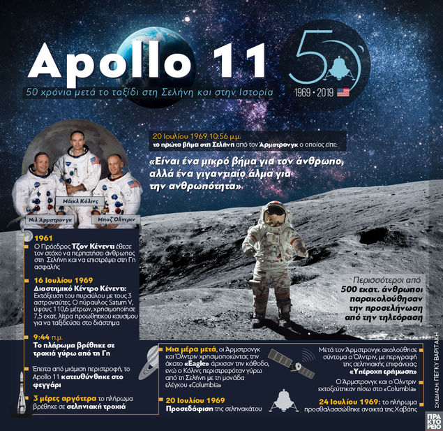 “Η διαστημική πτήση Apollo 11 είναι το μοναδικό γεγονός του 20ού αιώνα που θα έχει τη δυνατότητα να γίνει ευρέως γνωστό κατά τον 30ό αιώνα”, δήλωσε ο αντιπρόεδρος των ΗΠΑ Μάικ Πενς σε ομιλία του στο διαστημικό κέντρο Κένεντι στη Φλόριντα, απ΄όπου αναχώρησε η αποστολή.
