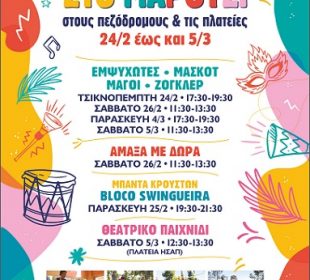 Πλούσιο πρόγραμμα δρώμενων στους πεζόδρομους και τις πλατείες του κέντρου της πόλης, 24/2 έως και 5/3 Πλούσιο πρόγραμμα με αποκριάτικα δρώμενα ...20 Φεβρουαρίου 2022