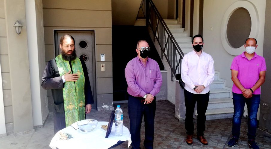 Τον Αγιασμό, που πραγματοποιήθηκε σε εξωτερικό χώρο με όλα τα μέτρα ασφαλείας, τέλεσε ο Προϊστάμενος του Ιερού Ναού Κοιμήσεως Θεοτόκου Αγίου Στεφάνου π.Χρυσοβαλάντης.
