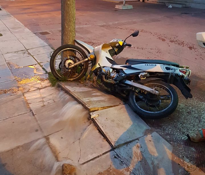 Φούσκωσαν οι πλάκες του πεζοδρομίου και έριξαν και ένα μηχανάκι , όπως θα δείτε στις φωτογραφίες.