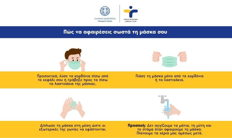 Πως πρέπει να αφαιρούμε την προστατευτική μάσκα – Οδηγίες από τον ΕΟΔΥ