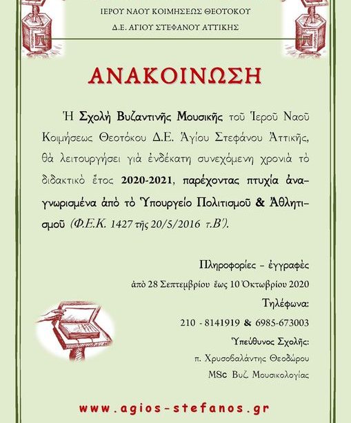 Publiée par Ἱερὸς Μητροπολιτικὸς Ναὸς Κοιμήσεως Θεοτόκου Ἁγίου Στεφάνου Ἀττικῆς sur Mercredi 9 septembre 2020
