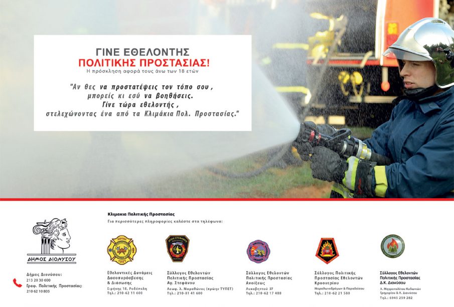 Γίνε κι εσύ εθελοντής, ενίσχυσε τις Εθελοντικές Ομάδες Πολιτικής Προστασίας του Δήμου Διονύσου!