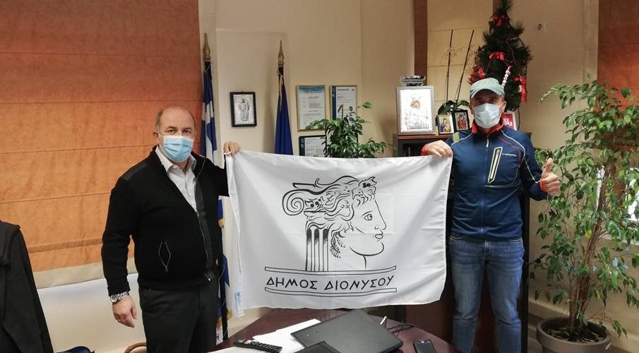 Ο Δήμαρχος Διονύσου Γιάννης Καλαφατέλης παρέδωσε την Παρασκευή 11 Δεκεμβρίου 2020 τη σημαία στον κ.Συκάρη, ο οποίος επισκέφθηκε το Δημαρχείο Διονύσου, και του ευχήθηκε καλή επιτυχία στη ριψοκίνδυνη αποστολή του. Τον ευχαρίστησε ακόμη που θα μεταφέρει τη σημαία του Δήμου στη δυσκολότερη για ορειβασία κορυφή του κόσμου και υψηλότερη στο Πακιστάν, με ύψος κορυφής 8.611 μέτρα.