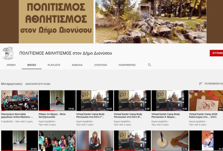 Πολιτισμός & Αθλητισμός στο Δήμο Διονύσου: Νέο Κανάλι στο YouTube