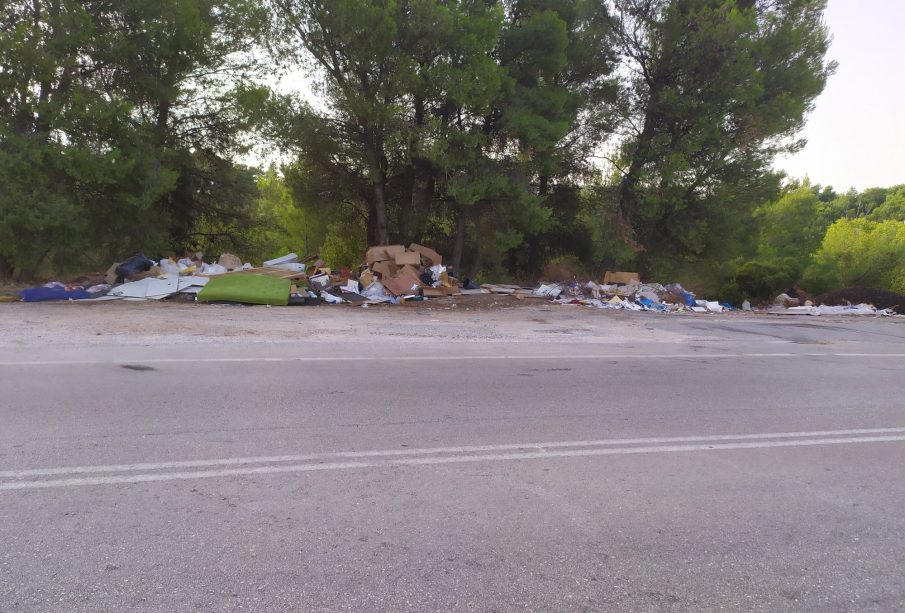 Πρόβλημα με τα σκουπίδια στον παράδρομο της Ε.Ο. στο ύψος της Άνοιξης