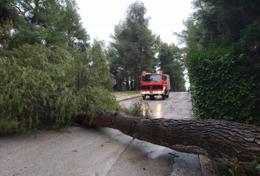 Το Κλιμάκιο Ροδόπολης επενέβη σήμερα 14-12-2019 σε πέντε ( 5 ) συνολικά συμβάντα , εκ των οποίων τέσσερεις ( 4 ) κοπές [ πεσμένων ] δέντρων και μία ( 1 ) διάσωση παγιδευμένων ατόμων από όχημα που βρισκόταν ακινητοποιημένο σε λιμνάζοντα ύδατα , συνεπεία της κακοκαιρίας “ΕΤΕΟΚΛΗΣ” που έπληξε από τις πρωϊνές ώρες το Δήμο Διονύσου.