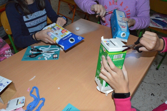 Μετά το τέλος της παρουσίασης και στο πλαίσιο της βιωματικής εφαρμογής του προγράμματος, λειτούργησαν συμμετοχικά αξιοποιώντας ένα παλιό μπλουζάκι, παλιές εφημερίδες και μια χάρτινη συσκευασία από γάλα ή χυμό, με τα οποία και δημιούργησαν μια πάνινη τσάντα, ένα μικρό κάδο απορριμμάτων και ένα πορτοφόλι.