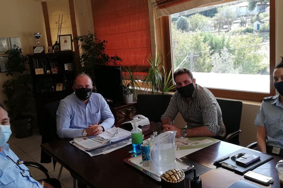 Συνάντηση για θέματα ασφάλειας και πρόληψης παραβατικότητας στο Δήμο Διονύσου, πραγματοποίησε την Τρίτη 13 Οκτωβρίου 2020 ο Δήμαρχος Γιάννης Καλαφατέλης, με τη συμμετοχή της νέας Διοικητού του Αστυνομικού Τμήματος Διονύσου Χαρίκλειας Δημοπούλου, του Διοικητή του Τμήματος Ασφαλείας Ιωάννη Μπαλατσού και του Διοικητή του Β΄ Τμήματος Τροχαίας Αυτοκινητοδρόμων Π.Α.Θ.Ε. Αττικής Νικόλαου Δέδε, παρουσία του Ανώτερου Αξιωματικού της Ελληνικής Αστυνομίας εν Αποστρατεία Κωνσταντίνου Χριστόπουλου.