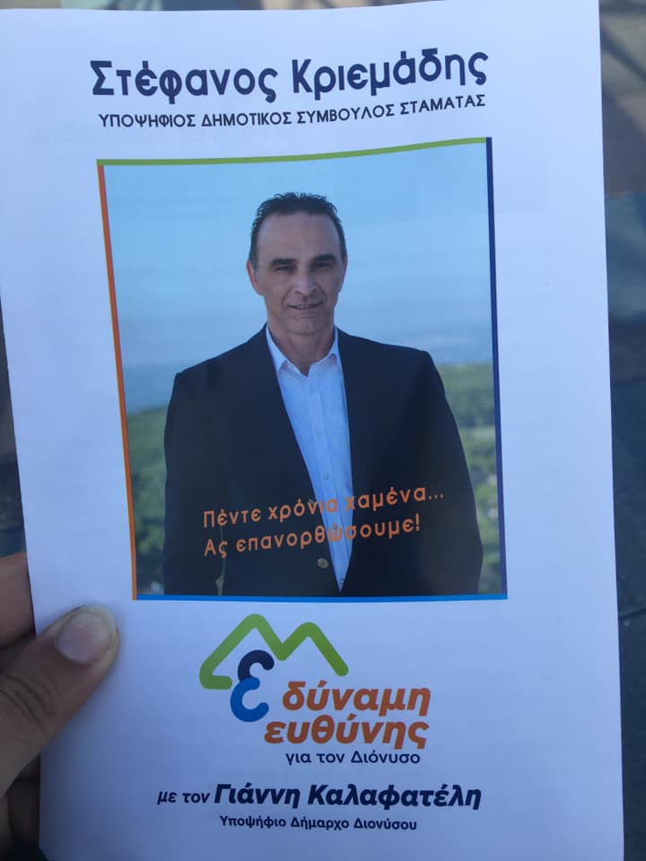 Μέσα από την καρδία μου, ένα μεγάλο ευχαριστώ στους 810 συμπολίτες μας που με τίμησαν με την ψήφο τους και με ανέδειξαν πρώτο σε σταυρούς δημοτικό σύμβουλο του Δήμου Διονύσου. Θα υπηρετήσω τον Δήμο με όλες μου τις δυνάμεις, τιμώντας την εμπιστοσύνη που μου δείξατε.