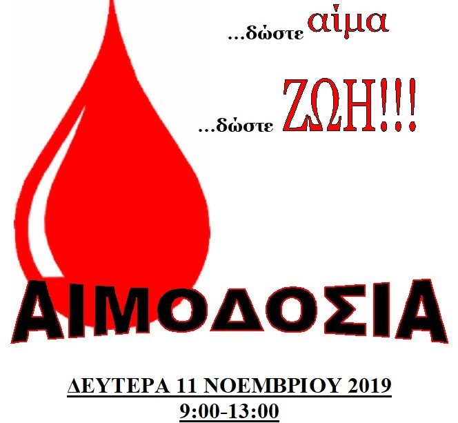 Η προσφορά προς τους συνανθρώπους μας μέσω της αιμοδοσίας είναι από τις πιο ευγενείς πράξεις. Η προσφορά αίματος είναι απλή διαδικασία, ακίνδυνη και με τεράστια οφέλη προς την υγεία των συνανθρώπων μας που χρειάζονται αυτό το πολύτιμο δώρο σε μια δύσκολη περιπέτεια υγείας.