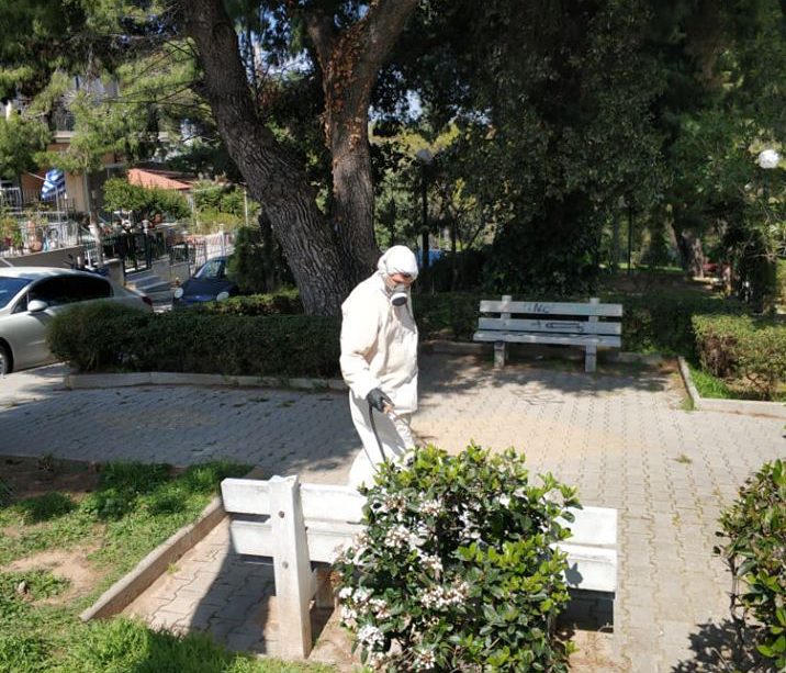 Το ειδικό συνεργείο ξεκίνησε την απολύμανση τις εργασίες του την Παρασκευή 20/3/2020 και θα συνεχίσει και την επόμενη εβδομάδα.