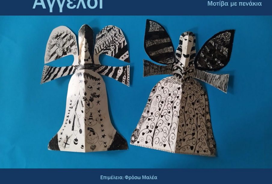 Η Φρόσω Μαλέα, δασκάλα του εργαστηρίου ζωγραφικής παιδιών και εφήβων του Ν.Π.Δ.Δ. Πολιτισμού & Αθλητισμού «Δημήτριος Βικέλας» του Δήμου Κηφισιάς, προτείνει στα παιδιά να δημιουργήσουν αγγέλους από χαρτί και να τους διακοσμήσουν με διαφορετικά μοτίβα.