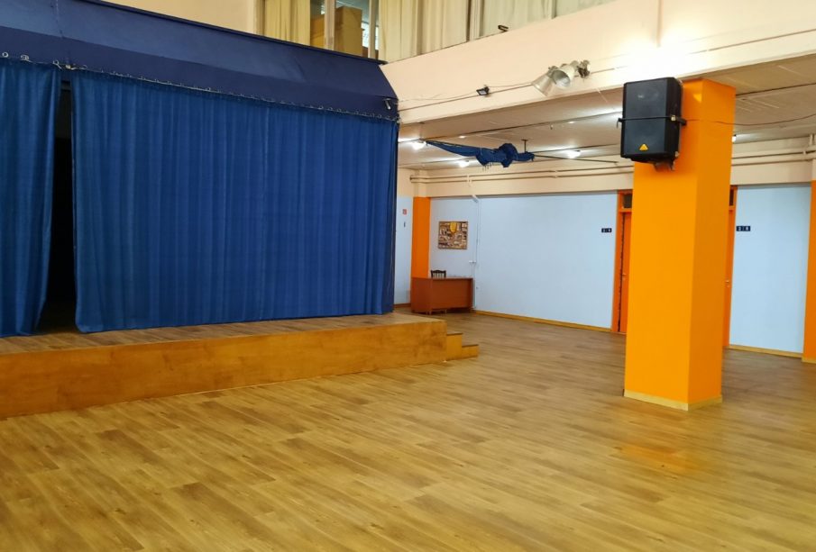 Πραγματοποιήθηκαν εργασίες αλλαγής δαπέδου, ανακαίνισης της σκηνής και ελαιοχρωματισμοί.