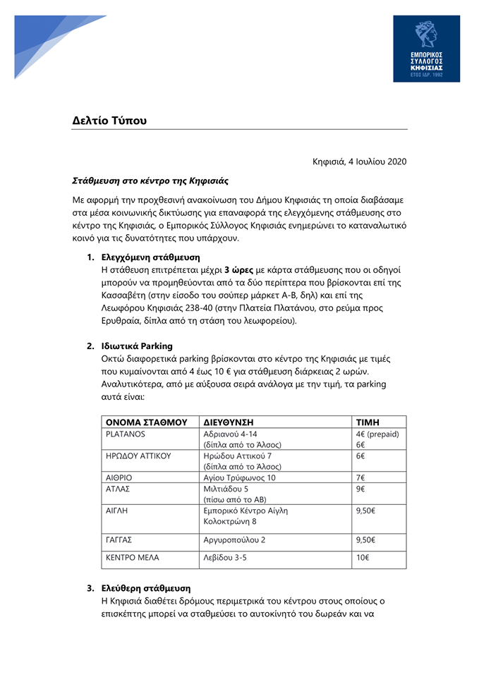 Εμπορικός Σύλλογος Κηφισιάς: Δείτε που μπορείτε να παρκάρετε στην Κηφισιά
