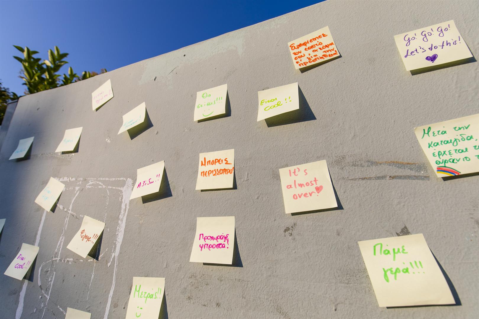 Μια ευχάριστη έκπληξη περίμενε τους υποψηφίους των Πανελληνίων Εξετάσεων του Δήμου Κηφισιάς. Στα δύο εξεταστικά κέντρα, το 3ο Λύκειο Κηφισιάς και το Λύκειο Ν. Ερυθραίας οι μαθητές και οι γονείς τους συνάντησαν μια πρωτότυπη «αφισοκόλληση» από post- it, χαρτάκια με θετικά μηνύματα όπως: «Καλή επιτυχία», «Μη σταματάς να ονειρεύεσαι», «Αξίζω κάθε μέρα», «Πάμε δυνατά!», «Είσαι μοναδικός».
