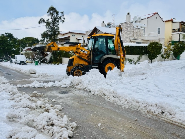 Παρακαλούμε επίσης τα αυτοκίνητα σας να είναι παρκαρισμένα από την μια πλευρά του δρόμου- εάν είναι εφικτό- για να διευκολυνθούν τα εκχιονιστικά μηχανήματα.
