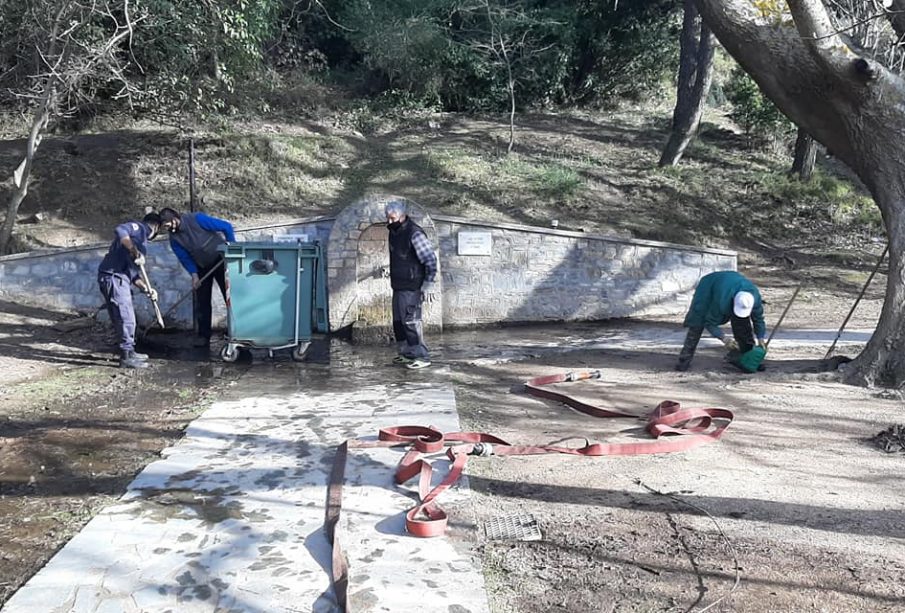 08.30 καθαρισμός και απόφραξη φρεατίων πηγής Καρακαντά από σκουπίδια ασυνείδητων επισκεπτών.