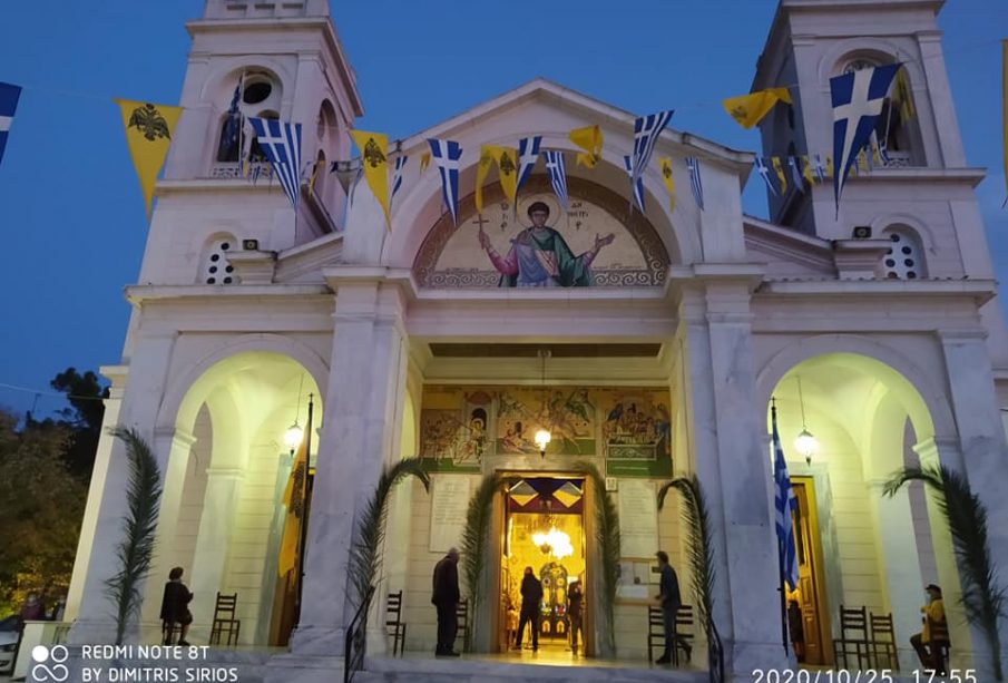 Με λαμπρότητα και σύμφωνα με τα υγειονομικά πρωτόκολλα, εορτάστηκε η μνήμη του Αγίου Μεγαλομάρτυρας Δημητρίου του Μυροβλήτου, στον Μητροπολιτικό Ιερό Ναό του Αγίου Δημητρίου Κηφισιάς.