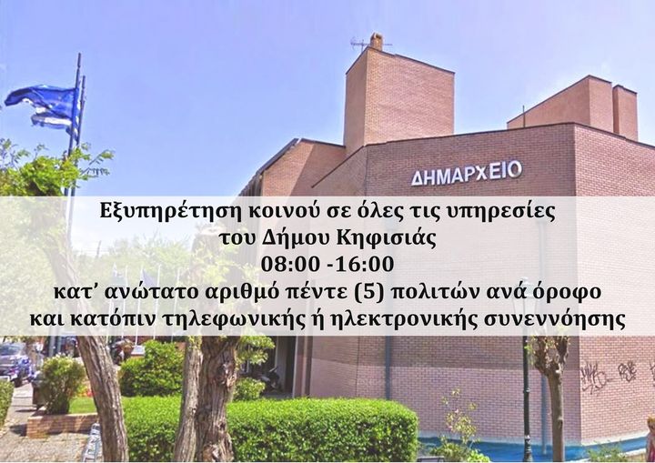Μόνο με ραντεβού η προσέλευση στις υπηρεσίες του Δήμου Κηφισιάς