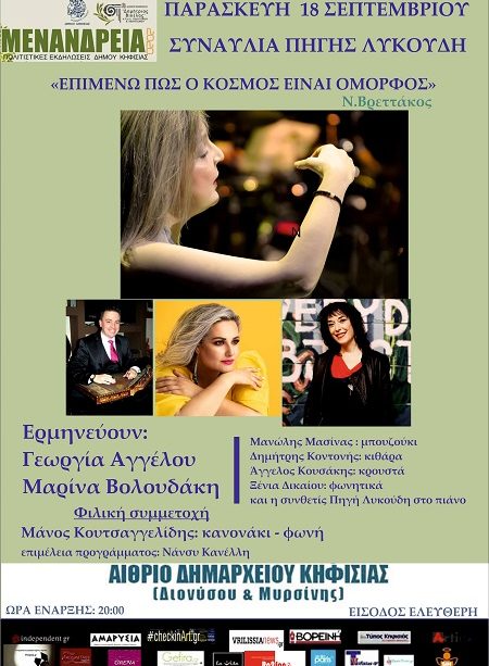 Μουσική βραδιά με την Πηγή Λυκούδη 18/9 στα Μενάνδρεια του Δήμου Κηφισιάς