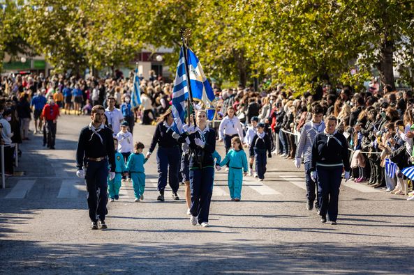 Αμέσως μετά ξεκίνησε η παρέλαση. Οι μαθήτριες και οι μαθητές από τα Δημοτικά, τα Γυμνάσια και τα Λύκεια αλλά και οι πρόσκοποι, οι οδηγοί και τα αθλητικά σωματεία του Δήμου παρήλασαν τιμώντας τους ήρωες του έπους. Η παρέλαση έκλεισε με την Ομάδα Εθελοντών Δασοπυροσβεστών Διασωστών και τα πυροσβεστικά οχήματα τους, σε μια εντυπωσιακή εμφάνιση.