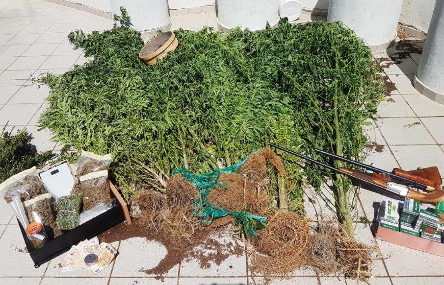 Κατασχέθηκαν -1.203- γραμμ. ακατέργαστης κάνναβης, -14- δενδρύλλια κάνναβης, ηλεκτρονική ζυγαριά ακριβείας, -2- κυνηγετικές καραμπίνες, -170- φυσίγγια και το χρηματικό ποσό των -450- ευρώ