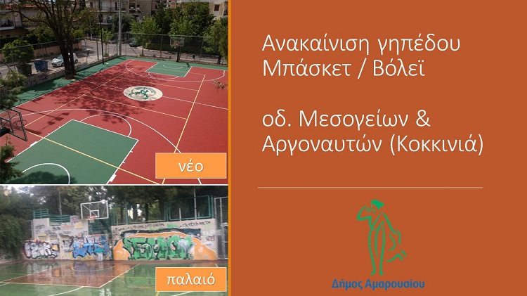 Δύο γήπεδα μπάσκετ / βόλεϊ (Κοκκινιά – Ανάβρυτα) και δύο ποδοσφαίρου (Νέο Τέρμα – Σωρός) ανακαινίστηκαν πλήρως και παραδίδονται στους Μαρουσιώτες