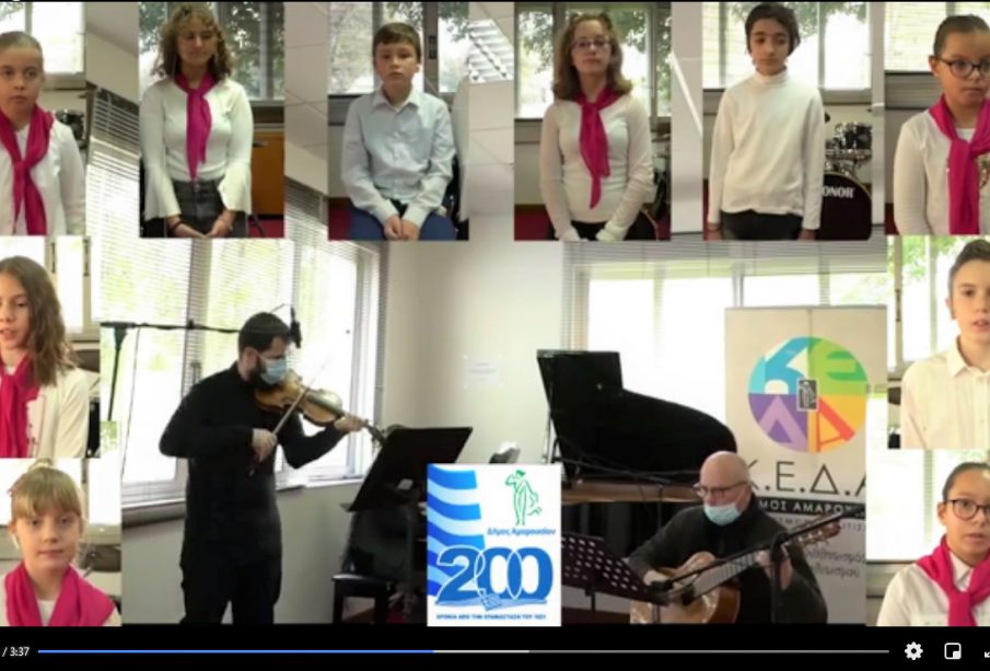 Ο Δήμος Αμαρουσίου συνεχίζει τις επετειακές εκδηλώσεις για τον εορτασμό των 200 χρόνων από την Ελληνική Επανάσταση, με την δημοσιοποίηση της παραγωγής της Παιδικής Χορωδίας του Δημοτικού Ωδείου: «Θούριος» Ρήγα Φεραίου.