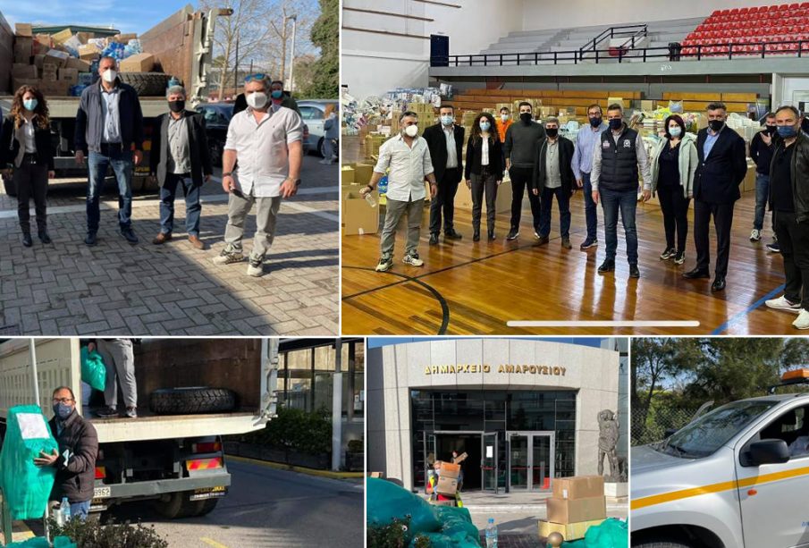 Το Δήμο Αμαρουσίου και τον Δήμαρχο Θεόδωρο Αμπατζόγλου εκπροσώπησε ειδική αποστολή αποτελούμενη από τον Πρόεδρο του Δημοτικού Συμβουλίου Δημήτρη Σμυρνή, τους Αντιδημάρχους Σπύρο Σταθούλη και Βαγγέλη Κάββαλο και τον Πρόεδρο του ΟΚΟΙΠΑΔΑ Πέτρο Κόνιαρη, η οποία συνόδεψε την υλική βοήθεια των Μαρουσιωτών (150 κούτες με είδη πρώτης ανάγκης), παραδίδοντάς την (13-3-2021) στον Δήμαρχο Τυρνάβου Γιάννη Κόκουρα.