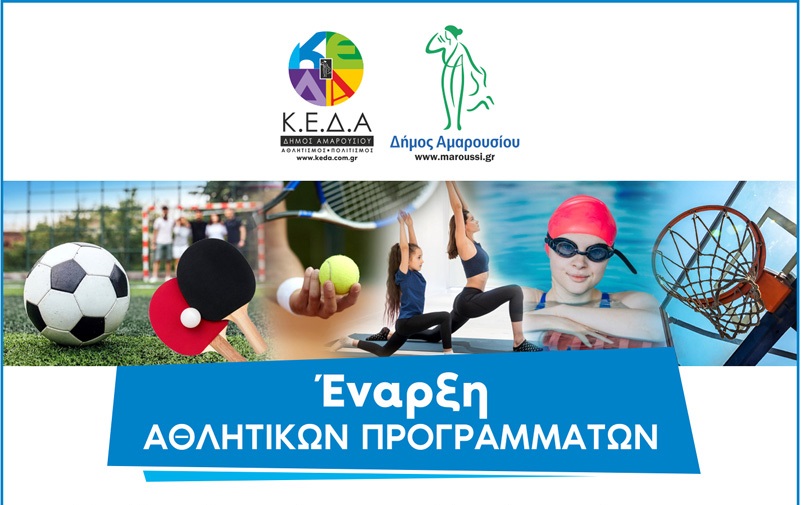 Τα αθλητικά προγράμματα του Δήμου Αμαρουσίου για τη χρονική περίοδο 2021 – 2022, που υλοποιούνται από την Κοινωφελή Επιχείρηση του Δήμου (ΚΕΔΑ), ξεκινούν την 1η Οκτωβρίου 2021.