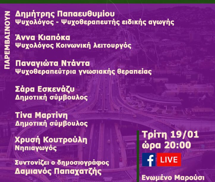 #Ενωμένο Μαρούσι: Αύριο Τρίτη (19/1) η διαδικτυακή εκδήλωση «Πανδημία και Ψυχική Υγεία»