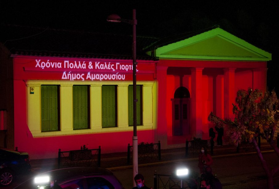 Σε μία αυστηρά περιορισμένη λόγω υγειονομικών συνθηκών τελετή που μεταδόθηκε μέσω διαδικτύου, ο Δήμαρχος Αμαρουσίου Θεόδωρος Αμπατζόγλου φωταγώγησε το Κέντρο Τέχνης & Πολιτισμού και την Πινακοθήκη του Δήμου, συνοδεία Χριστουγεννιάτικων μελωδιών από την ορχήστρα εγχόρδων νέων του Δημοτικού Ωδείου.