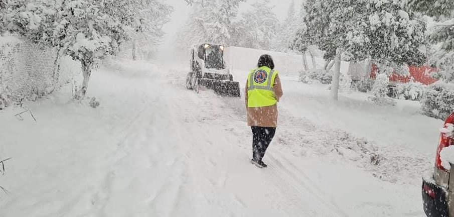 Συνιστούμε σε όλους να αποφεύγουν τις άσκοπες μετακινήσεις και να ακολουθούν τις οδηγίες της Γραμματείας Πολιτικής Προστασίας. Όσοι επιλέξουν να χρησιμοποιήσουν το ΙΧ τους να φέρουν οπωσδήποτε αντιολισθητικές αλυσίδες.