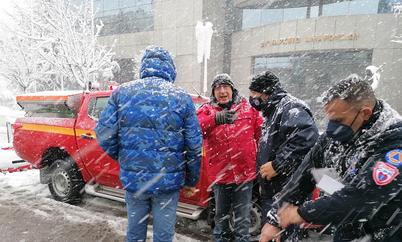 Συνιστούμε σε όλους να αποφεύγουν τις άσκοπες μετακινήσεις και να ακολουθούν τις οδηγίες της Γραμματείας Πολιτικής Προστασίας. Όσοι επιλέξουν να χρησιμοποιήσουν το ΙΧ τους να φέρουν οπωσδήποτε αντιολισθητικές αλυσίδες.