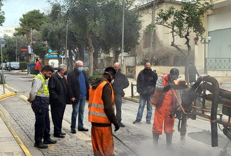 Αυτοψία πραγματοποίησε ο Δήμαρχος Αμαρουσίου Θεόδωρος Αμπατζόγλου την Κυριακή 20 Φεβρουαρίου 2022 στις εργασίες αποκατάστασης οδοστρώματος επί της οδού Χατζηαντωνίου στο κέντρο της πόλης παρουσία του Αντιδημάρχου Καθαριότητας και Εξ. Συνεργείων Επαμεινώνδα Κατσιγιάννη.