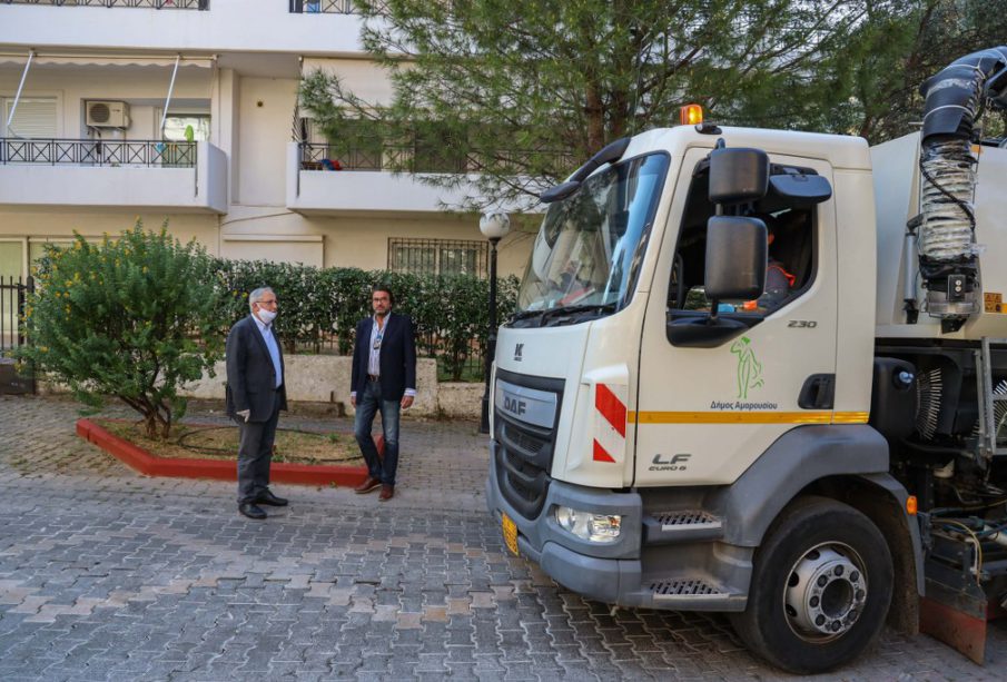 Οι εργασίες πραγματοποιούνται στο πλαίσιο εκτέλεσης προγράμματος καθαριότητας και ευπρεπισμού όλων των γειτονιών του Αμαρουσίου και με προτεραιότητα τους κοινόχρηστους χώρους συγκέντρωσης πολιτών.