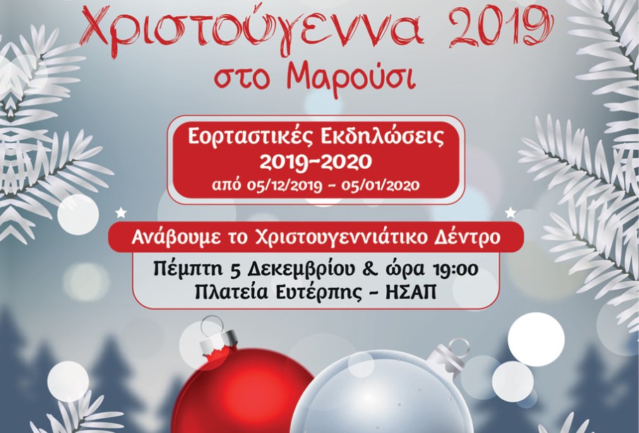 Το Μαρούσι ανάβει το Χριστουγεννιάτικο δέντρο αύριο Πέμπτη 5/12 στις 07:00μμ στην Πλατεία Ευτέρπης