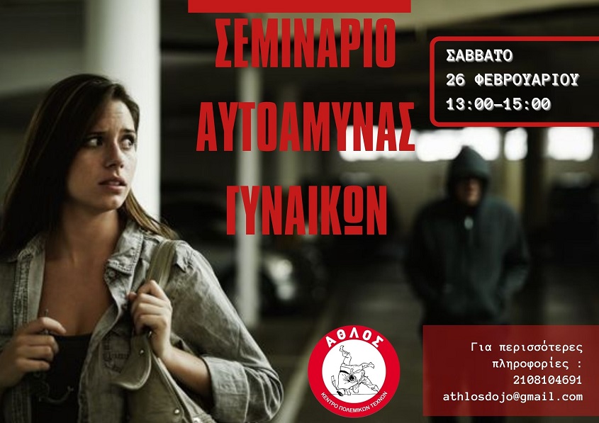 Ο “ΑΘΛΟΣ ΜΕΛΙΣΣΙΩΝ” πιστός στην ενδυνάμωση των γυναικών και την προώθηση της προστασίας τους μέσω της αυτοάμυνας διοργανώνει το ετήσιο Σεμινάριο Αυτοάμυνας Γυναικών που θα διεξαχθεί το Σάββατο 26/02 στις 13:00-15:00 .Τηρώντας όλα τα υγειονομικά πρωτόκολλα και μέτρα ασφαλείας κατά της πανδημίας covid-19,σας προσκαλεί να συμμετάσχετε και εσείς στη δράση του.
