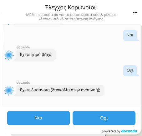 Το σύστημα που αναπτύχθηκε από την Docandu, αξιοποιεί την ιατρική βιβλιογραφία, τη τεχνολογία και τη στατιστική για να προσδιορίσει την πιθανότητα να έχει κάποιος μολυνθεί ώστε να αναζητήσει άμεσα ιατρική βοήθεια.
