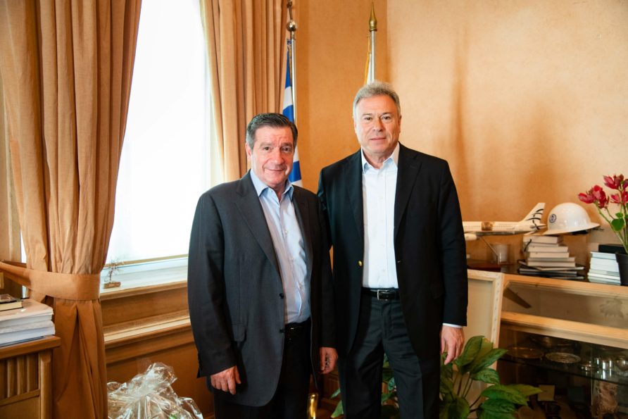 Οι δύο άνδρες αντάλλαξαν ευχές για καλή επιτυχία ενόψει των προσεχών ευρωεκλογών και αυτοδιοικητικών εκλογών.