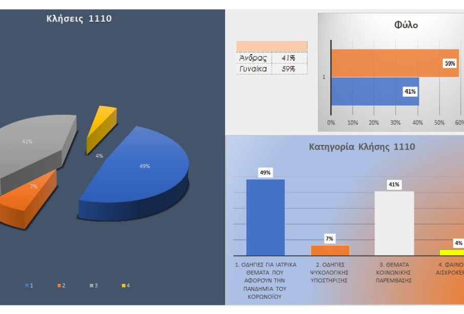 Σύμφωνα με τα πρόσφατα στατιστικά, ένας στους δύο πολίτες (48%) απευθύνεται στον τετραψήφιο αριθμό 1110 προκειμένου να ζητήσει πληροφορίες για ιατρικά θέματα. Επιπλέον ένα 7% ζητά οδηγίες για ψυχολογική υποστήριξη, ενώ το 41% απευθύνεται στο τηλεφωνικό κέντρο για θέματα κοινωνικής παρέμβασης. Τέλος 3,8% καταγγέλλει φαινόμενα αισχροκέρδειας.