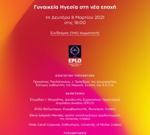 Τη Δευτέρα 8 Μαρτίου 2021, Παγκόσμια ημέρα της Γυναίκας, το “Κέντρο Μελετών Πολιτικής για το Φύλο και την Ισότητα” του EPLO, διοργανώνει ...Η Πρεσβεία του Ισραήλ γιορτάζει την Ημέρα της Γυναίκας με την ταινία «Zero Motivation»