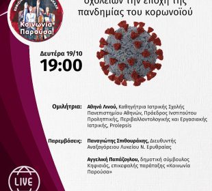 Η δημοτική παράταξη «ΚΟΙΝΩΝΙΑ ΠΑΡΟΥΣΑ στην Κηφισιά, Νέα Ερυθραία, Εκάλη» διοργανώνει την Δευτέρα 19 Οκτωβρίου 2020 στις 19.00 διαδικτυακή εκδήλωση με θέμα «Ασφαλής λειτουργία των σχολείων την ...Ασφαλείς στη Λυρική (VIDEO)