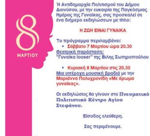 4, 7 & 8 Μαρτίου 2020 Εκδηλώσεις με ελεύθερη είσοδο Στο πλαίσιο της συνεργασίας της Εθνικής Λυρικής Σκηνής με τον Δήμο Σκιάθου ...Διήμερο εκδηλώσεων του Δήμου Χαλανδρίου 7 και 8 Μαρτίου με αφορμή την Παγκόσμια Ημέρα ...