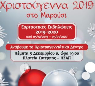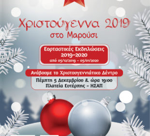 Το Μαρούσι ανάβει το Χριστουγεννιάτικο δέντρο την Πέμπτη 5 Δεκεμβρίου 2019, ώρα 19:00 στην Πλατεία Ευτέρπης και ανοίγει την αυλαία των εορταστικών ...Φωταγωγήσεις Χριστουγεννιάτικων Δέντρων με Φωτεινή Δάρρα και Θάνο Καλλίρη στον Δήμο Κηφισιάς