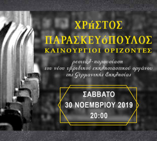 Ρεσιτάλ παρουσίασης του νέου υβριδικού εκκλησιαστικού οργάνου της Γερμανικής Εκκλησίας Αθηνών, το Σάββατο 30 Νοεμβρίου 2019 στις 20:00. Ο Χρήστος Παρασκευόπουλος ...Ημερίδα για την Ιδιωτικότητα και τα Δεδομένα