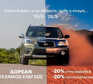 Δωρεάν Τεχνικός Έλεγχος και έκπτωση 20% σε γνήσια ανταλλακτικά και 20% στην εργασία! 10-28 Μαΐου μόνο στους εξουσιοδοτημένους συνεργάτες Subaru Τώρα περισσότερο ...Το BMW Group Hellas στηρίζει την αθλήτρια στίβου Ραφαέλα Σπανουδάκη
