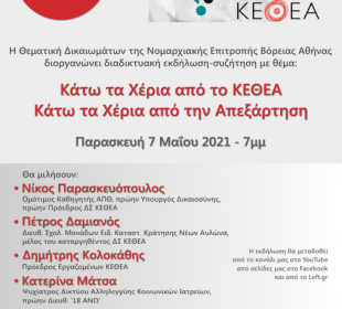 Διαδικτυακή εκδήλωση-συζήτηση της Θεματικής Δικαιωμάτων ΝΕΒΑ του ΣΥΡΙΖΑ-ΠΣ, “Κάτω τα Χέρια από το ΚΕΘΕΑ – Κάτω τα Χέρια από την Απεξάρτηση” Παρασκευή ...- ΒΡΙΛΗΣΣΙΑΔήμος ΑθηναίωνΔήμος ΑχαρνώνΔήμος ΓαλατσίουΔήμος ΓλυφάδαςΔημος ΔιονυσουΔημος Ηρακλειου ΑττικηςΔημος ΚηφισιαςΔήμος ΛαυρεωτικήςΔημος ΜαραθωναΔήμος ΠαλλήνηςΔήμος Παπάγου – ΧολαργούΔημος ΠεντεληςΔημος Πευκης -ΛυκοβρυσηςΔημος Ραφηνας - ΠικερμιουΔήμος ΣαρωνικούΔήμος Φιλοθέης-ΨυχικούΔΗΜΟΣ ΦΥΛΗΣΔημος ΧαλανδριουΔημος ΩρωπουΜαρουσιΤελευταια Νεα